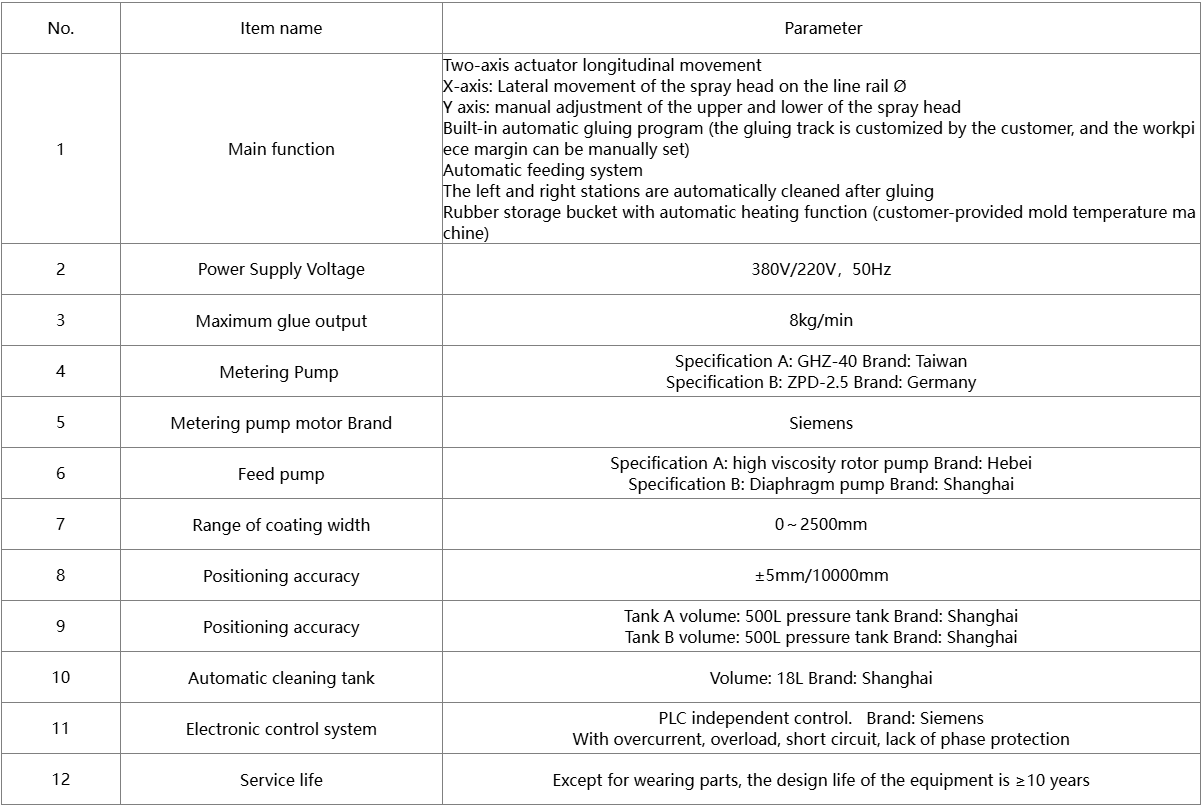 3. Function introduction: The glue coating machine is used to accurately measure the single-component glue or two-component glue and evenly spray it on the surface of the workpiece. According to the characteristics of the glue, it can be equipped with functions such as automatic feeding, automatic heating, automatic cleaning, nitrogen filling protection, and overpressure alarm.