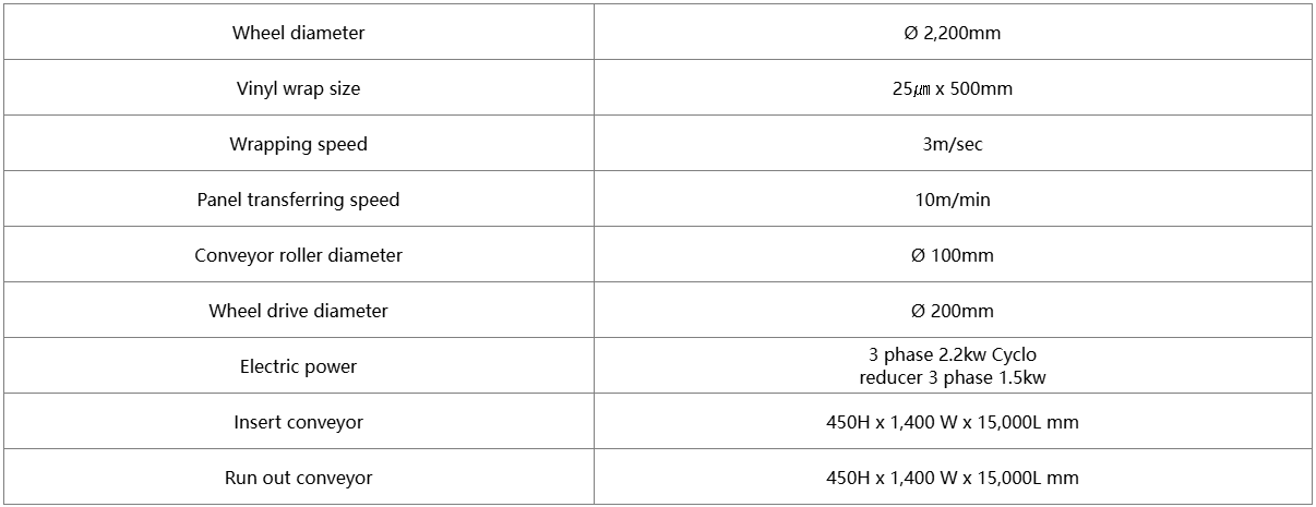 This is packing machine by PVC wrapping the filed panels by stacker.