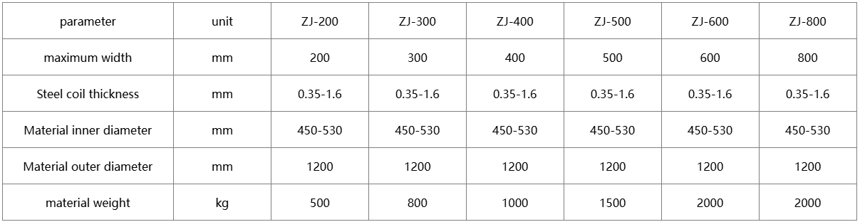 The main specifications of hydraulic uncoiler are 5 tons, 7 tons, 10 tons, 12.5 tons, 15 tons and 20 tons. Mainly used for coil feeding and recycling. Each set of uncoiler includes feeding trolley, V-shaped loading interface, hydraulic station, auxiliary