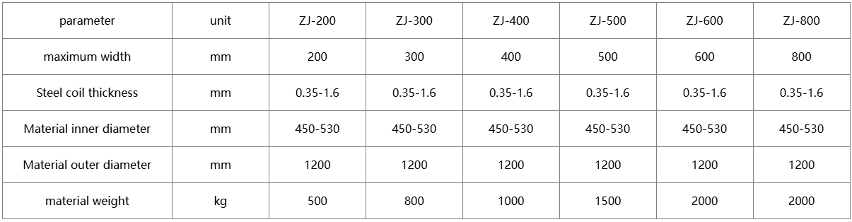 The main specifications of hydraulic uncoiler are 5 tons, 7 tons, 10 tons, 12.5 tons, 15 tons and 20 tons. Mainly used for coil feeding and recycling. Each set of uncoiler includes feeding trolley, V-shaped loading interface, hydraulic station, auxiliary
