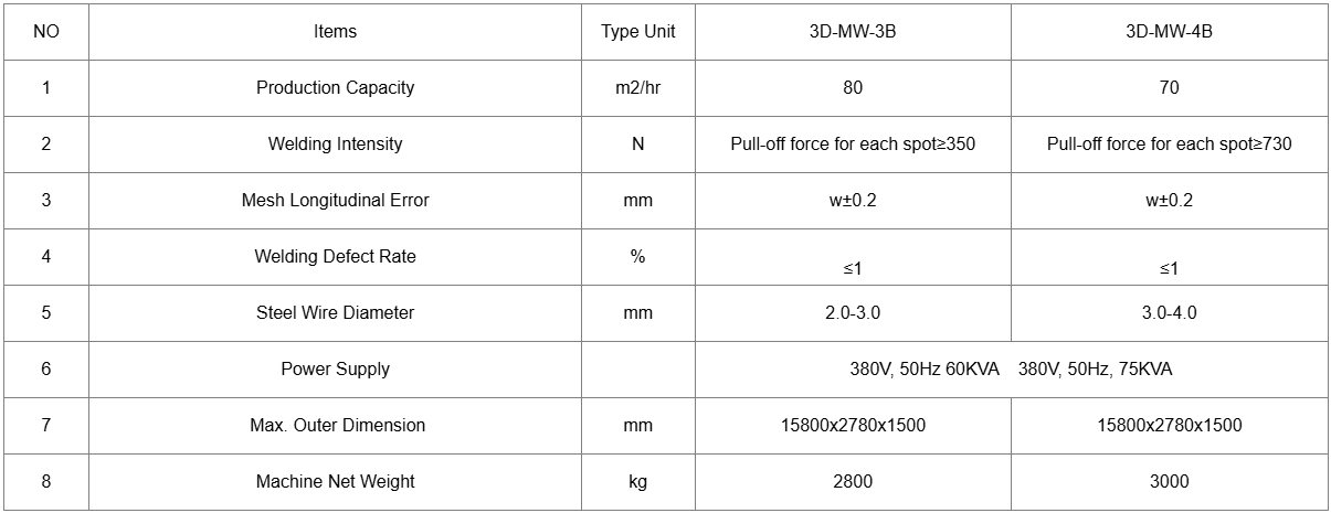 1. The Welding Machine welds the horizontal and vertical wires to form a steel wire mesh. Mesh Width: 1200mm, Grid size: 50 x 50mm or 50 x 100mm.